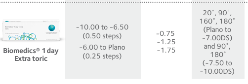Axis: 20,90,160,180 (for power-0.00~-7.00) Axis: 90,180 (for power-7.50~-10.00) |